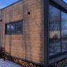 6. Фасад. По умолчанию во всех моделях используется фасад из комбинации дерево + профлист. Где фасадная стена выполнена из дерева, вертикальные рейки 40х40мм, боковые и задняя стена из профнастила (вариант обшивки фасада можно изменить). Весь отделочный пиломатериал предварительно шлифуется и пропитывается качественным составом в 2 слоя. Обшивка всех углов, примыканий, наличников выполнено из металла или строганной доски.