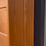 8. Фасад. Два черновых армирующих слоя, чистовое покрытие структурная штукатурка барашек белый цвет + вставки из сосновой рейки натуральный цвет.