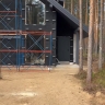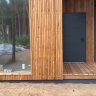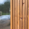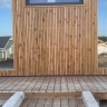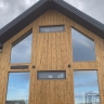 8. Фасад. Два черновых армирующих слоя, чистовое покрытие структурная штукатурка барашек белый цвет + вставки из сосновой рейки натуральный цвет.