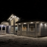 6. Фасад. По умолчанию во всех моделях используется фасад из комбинации дерево + профлист. Где фасадная стена выполнена из дерева, вертикальные рейки 40х40мм, боковые и задняя стена из профнастила (вариант обшивки фасада можно изменить). Весь отделочный пиломатериал предварительно шлифуется и пропитывается качественным составом в 2 слоя. Обшивка всех углов, примыканий, наличников выполнено из металла или строганной доски.