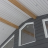6. Фасад. По умолчанию во всех моделях используется фасад из комбинации дерево + профлист. Где фасадная стена выполнена из дерева, вертикальные рейки 40х40мм, боковые и задняя стена из профнастила (вариант обшивки фасада можно изменить). Весь отделочный пиломатериал предварительно шлифуется и пропитывается качественным составом в 2 слоя. Обшивка всех углов, примыканий, наличников выполнено из металла или строганной доски.
