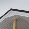 6. Фасад. По умолчанию во всех моделях используется фасад из комбинации дерево + профлист. Где фасадная стена выполнена из дерева, вертикальные рейки 40х40мм, боковые и задняя стена из профнастила (вариант обшивки фасада можно изменить). Весь отделочный пиломатериал предварительно шлифуется и пропитывается качественным составом в 2 слоя. Обшивка всех углов, примыканий, наличников выполнено из металла или строганной доски.