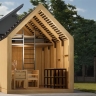 – Создание на участке малых архитектурных форм в едином стиле: навесы, зоны патио, беседки, перголы, террасы, сауны, уличные кухни, зоны с камином, гостевые домики, въездные группы, гаражи, заборы и ограждения.