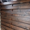 • Пропитка отработкой (+20грн за 1м2). Отработанное масло прекрасно подходит для того, чтобы сохранить древесину на десятки лет. Благодаря низкой стоимости мы можем нанести супер толстый слой, что позволит законсервировать дерево надолго. А визуально вместе с процедурой обжига получится красивый темно-шоколадный цвет.